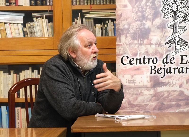 Como telón de fondo al diálogo de los dos escritores y poetas, la bella biblioteca del Ateneo Cultural “Casino Obrero” de Béjar, a cuya junta directiva damos las gracias por habernos prestado este emplazamiento. Ellos también luchan desde hace casi 150 años por la cultura bejarana.