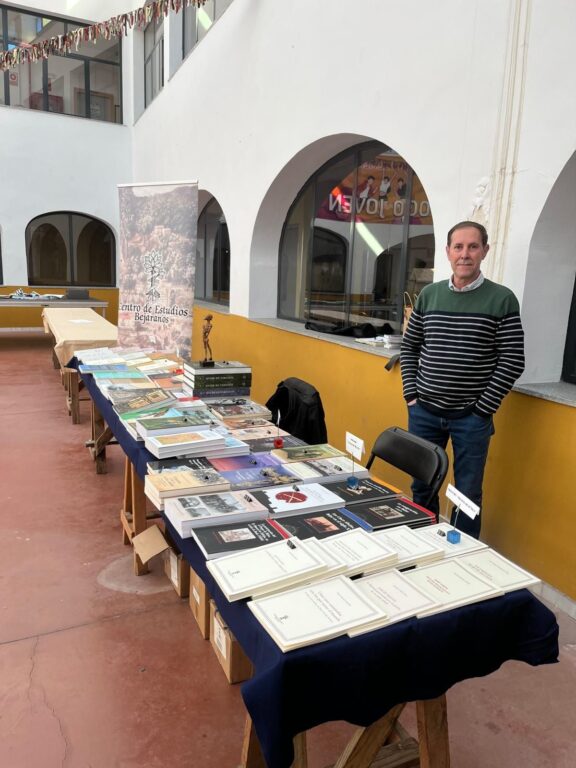 Invitados por la Asociación de Vecinos de San Juan a su celebración del Día del Libro 2025, acudimos con un puesto de libros a la antigua Plaza del Mercado. La idea era poner a la venta con precios especiales una selección de los títulos de nuestros catálogo, pero al final, y gracias a la iniciativa y el empuje de nuestro tesorero Juan Antonio Frías Corsino, la oferta acabó siendo muy completa, con publicaciones que iban desde los discursos, pasando por la biografías, los dos volúmenes de la Historia de Béjar o las revistas hasta llegar a casi todos los premios “Ciudad de Béjar”.