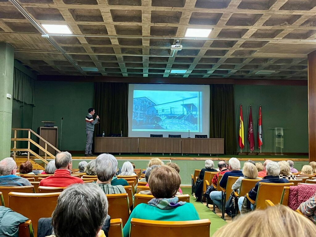 Por su parte el ponente realizó una amena exposición recorriendo el patrimonio industrial de Béjar desde el curso alto del río Cuerpo de Hombre hasta la fábrica de Gómez-Rodulfo, destacando los elementos que hacen único nuestro paisaje industrial. En su exposición no dejó de lado las fábricas enclavadas en el casco urbano de la ciudad, ni tampoco las dedicadas a otras actividades fuera del ámbito textil lanero como el papel, los curtidos o la siderurgia. Acompañó la charla con fotografías inéditas de edificios fabriles y explicaciones curiosas que hicieron las delicias del público.