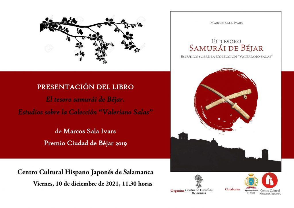 El próximo viernes 10 de diciembre de 2021 tenemos una doble cita enmarcada dentro del programa “En diciembre más libros”. Se trata de la presentación en Salamanca y en Béjar del libro galardonado con el Premio “Ciudad de Béjar” 2019 de Marcos Sala Ivars El tesoro samurái de Béjar. Estudios sobre la Colección Valeriano Salas de Béjar de guardas de sables japoneses.