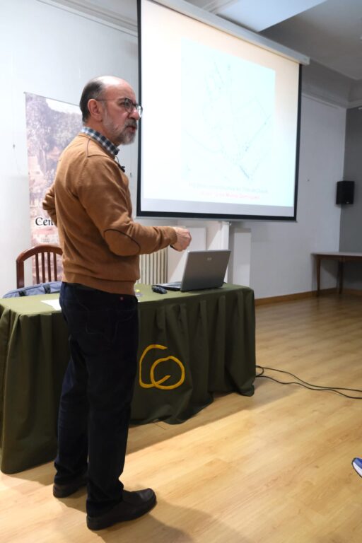 El ponente ofreció unas pinceladas sobre las características de esta nueva asociación y agradeció al Casino Obrero, cuya presidenta, Isabel de la Cruz, se hallaba entre el público, la amabilidad de acoger esta actividad. En primer lugar ofreció interesantes datos sobre cómo se teñía en la Edad Moderna con el uso de plantas y el proceso técnico utilizado para fijar el tinte a la lana, para después centrarse en el origen ducal del edificio usado como tinte desde 1592, una fase que acabó siendo monopolio de la Casa Ducal. Así todos los fabricantes textiles debían acudir al Tinte del Duque para llevar a cabo este proceso técnico con garantías de calidad, pagando una cantidad por este servicio, dinero que iba a parar a las arcas señoriales.