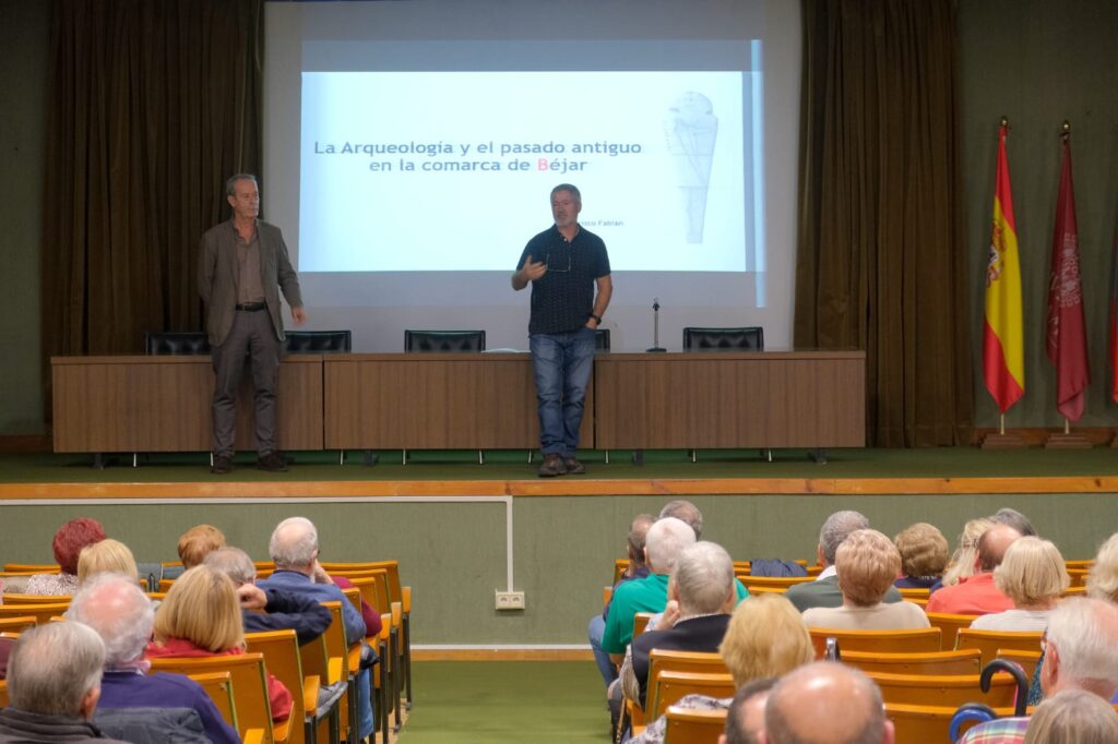 Un segundo bloque de la charla consistió en un breve recorrido por los hallazgos de la comarca bejarana y su extensión a tierras abulenses, centrándose en yacimientos de El Tejado, Navalmoral de Béjar, Fuentebuena, Valdesangil o la Peña de la Cruz, desde el Paleolítico Superior hasta la Alta Edad Media.